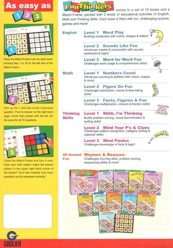 Fun Thinkers hadir dengan 10 set buku dan sebuah bingkai belajar yang dikemas dengan 3 tingkat aktivas belajar. Setiap buku berisi penuh dengan kegembiraan, kuis yang menarik, permainan dan masih banyak lagi - Setiap buku terdiri dari 40 halaman - Ilustrasi penuh warna - Lebih dari 350 pertanyaan dlm 40 halaman |